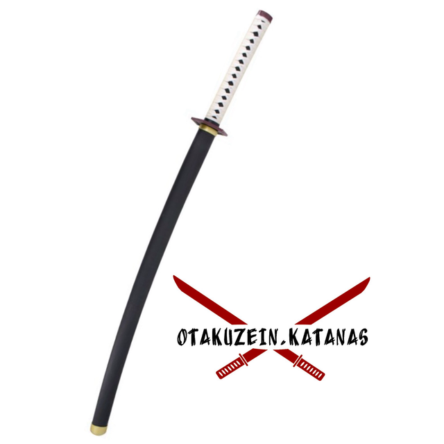 Katana S0247 de Demon Slayer empuñada por Tomioka Giyuu réplica no oficial de 101 cm hoja de acero, mango con encordado blanco con piel de imitación de raya color negro. Ref. S0247