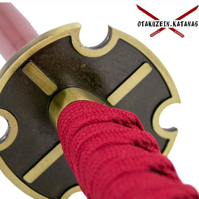 Katana S5019 Sandai Kitetsu de Zoro de One Piece réplica no oficial de 103 cm hoja de acero negra con dentado satinado, mango con encordado burdeos, con soporte. Ref. S5019