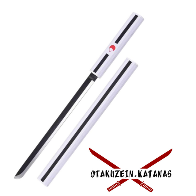 Katana S5049 Sasuke Uchiha de Naruto réplica no oficial de 45 cm hoja de acero negra, vaina blanca, con soporte. Ref.S5049
