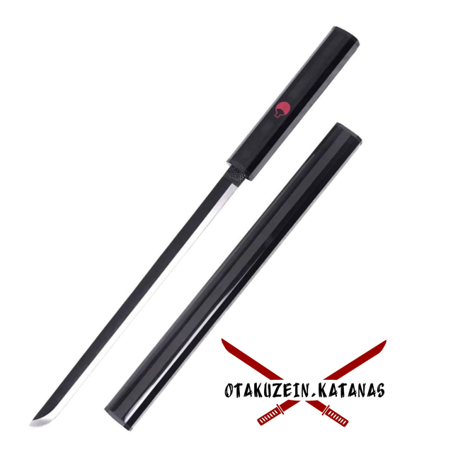 Katana S5050 Sasuke Uchiha de Naruto réplica no oficial de 45 cm hoja de acero negra, vaina negra, con soporte. Ref.S5050