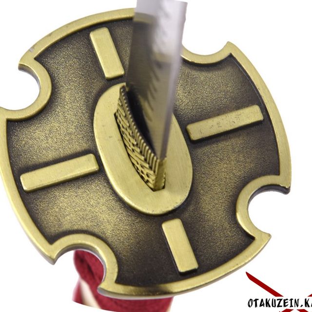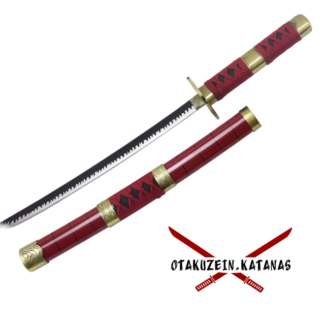 Katana S5054 Sandai Kitetsu de Zoro de One Piece réplica no oficial de 45 cm hoja de acero negra con dentado satinado, mango con encordado burdeos, con soporte. Ref. S5054