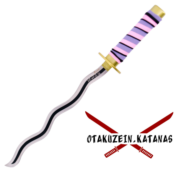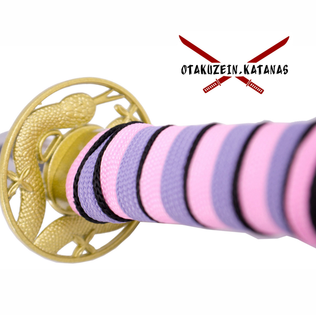 Katana S5069 de Demon Slayer empuñada por Obanai Iguro réplica no oficial de 44 cm hoja de acero, mango con encordado rosa y lila. Ref. S5069