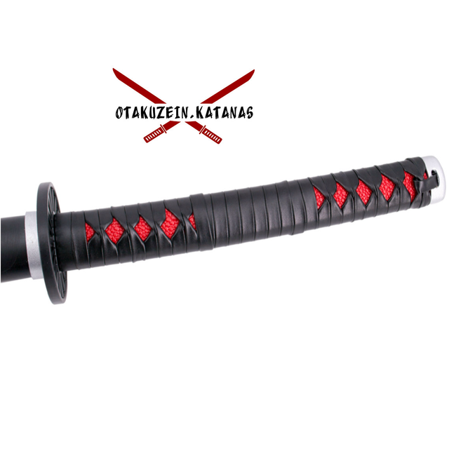 Katana S5083 de Demon Slayer empuñada por Kamado Tanjirou réplica no oficial de 101 cm hoja de acero, mango con encordado negro de polipiel e imitación de piel de raya en color rojo. Ref. S5083