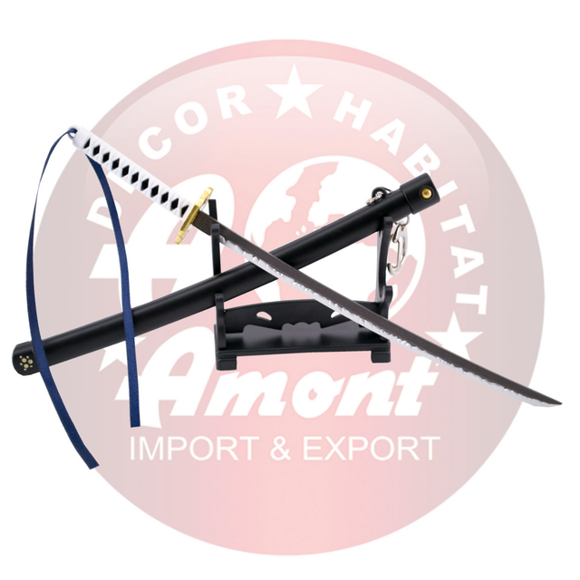 Llavero katana Vergil Yamato de Devil May Cry 5 A11782, de 23.5 cm, fabricados en zinc y acero, con sistema de apertura servido en blister, con soporte Ref. A11782